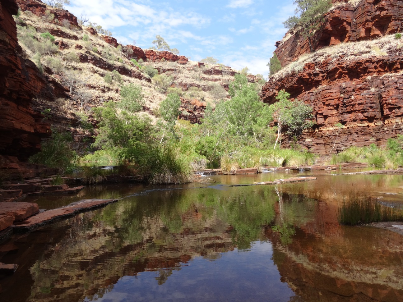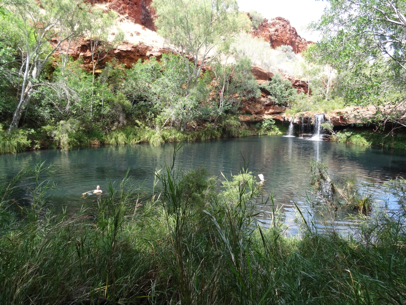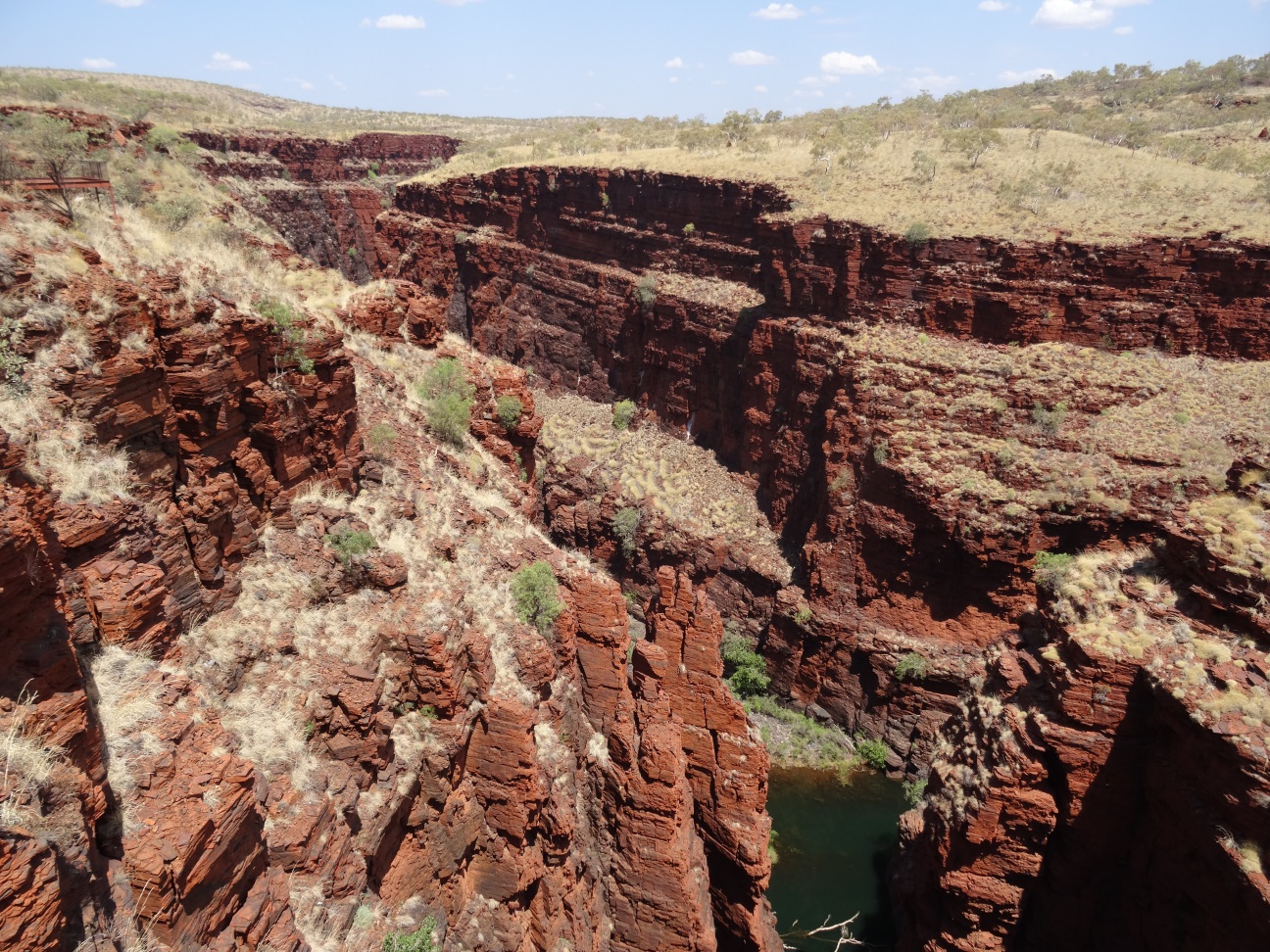 Vor dem Karijini Nationalpark angekommen, erleben wir zum ersten Mal in Australien ein Gewitter. Die verregnete Nacht bringt Abkühlung für den Schlaf, wofür wir nicht undankbar sind. Am nächsten Morgen scheint die Sonne wieder, als ob nichts gewesen wäre, und beschert uns einen herrlichen Tag in den Schluchten und Canyons des Karijini Nationalpark.