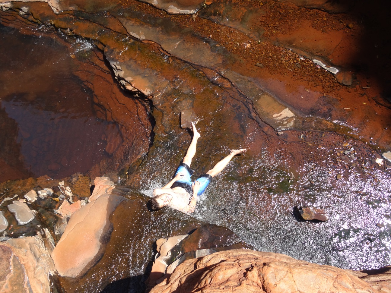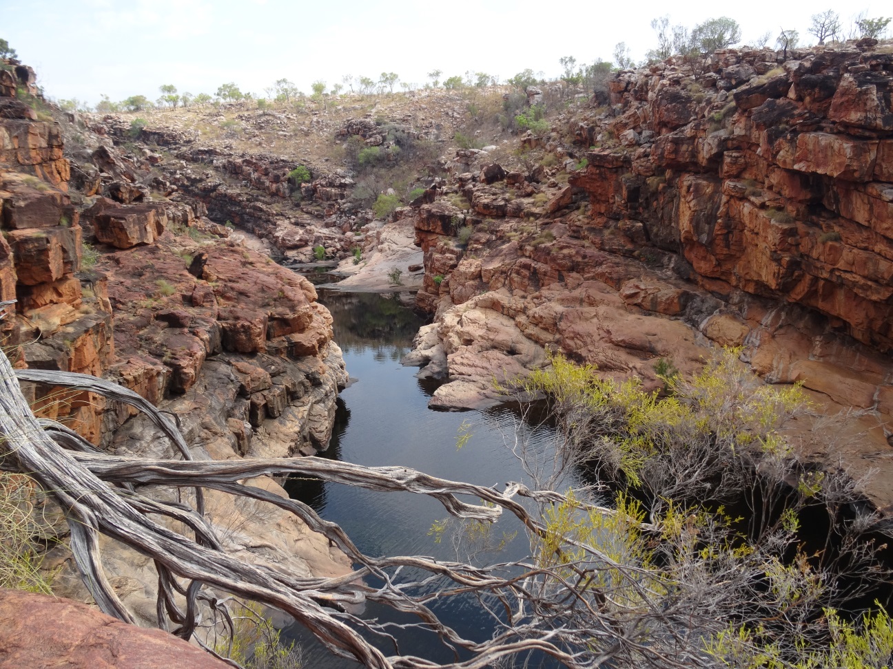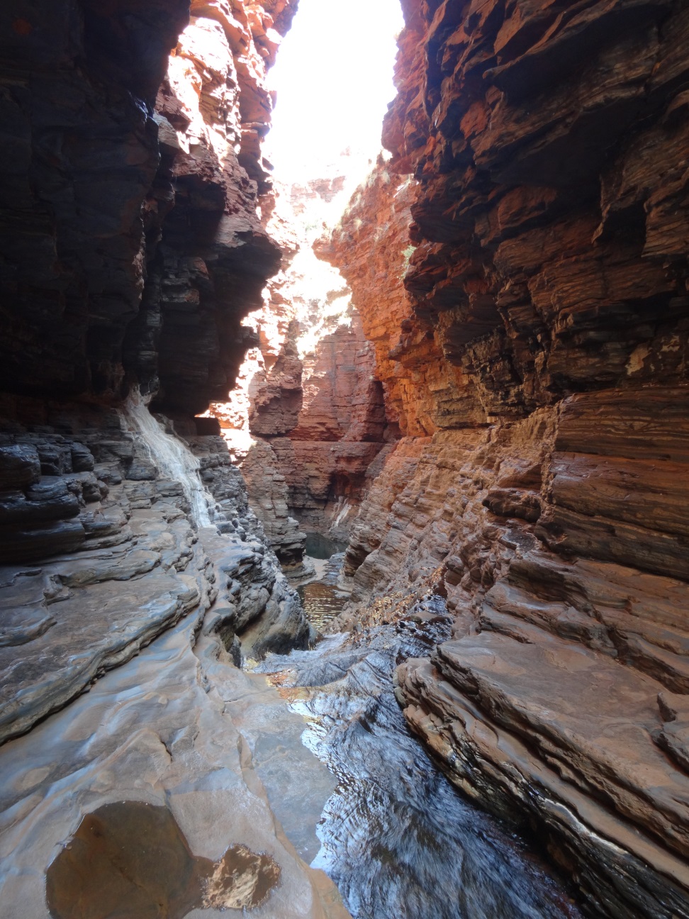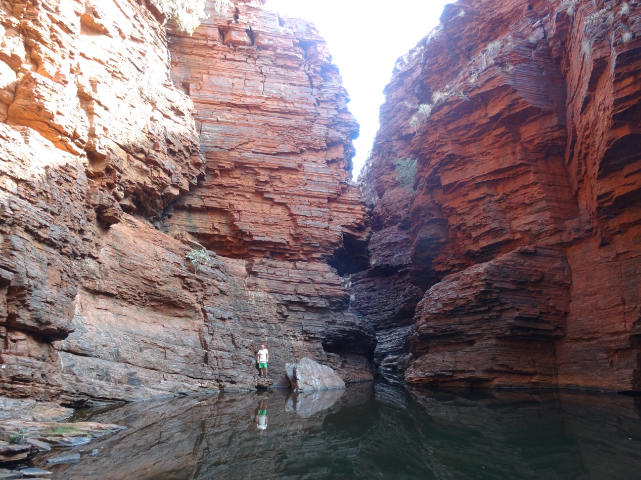 Vor dem Karijini Nationalpark angekommen, erleben wir zum ersten Mal in Australien ein Gewitter. Die verregnete Nacht bringt Abkühlung für den Schlaf, wofür wir nicht undankbar sind. Am nächsten Morgen scheint die Sonne wieder, als ob nichts gewesen wäre, und beschert uns einen herrlichen Tag in den Schluchten und Canyons des Karijini Nationalpark.