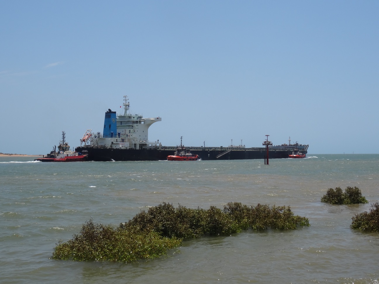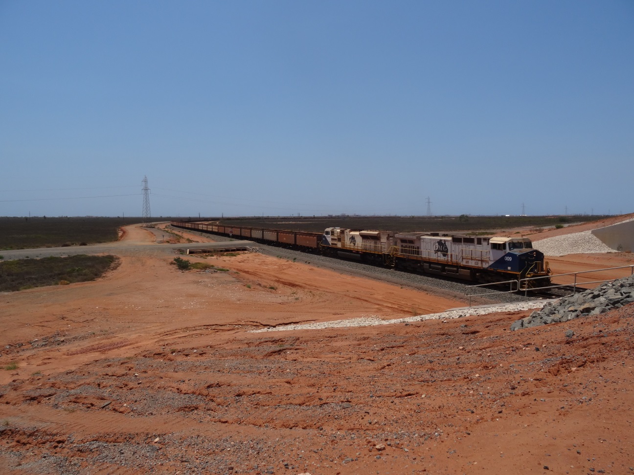 Unsere Route führt uns als nächstes zum Karijini Nationalpark. Doch zuerst halten wir in Port Hedland, dem grössten Umschlagplatz für Eisenerz in Australien. Endlos lange Züge bringen das Erz aus den umliegenden Minen zum Hafen, von dort laufen riesige Frachtschiffe in die ganze Welt aus.